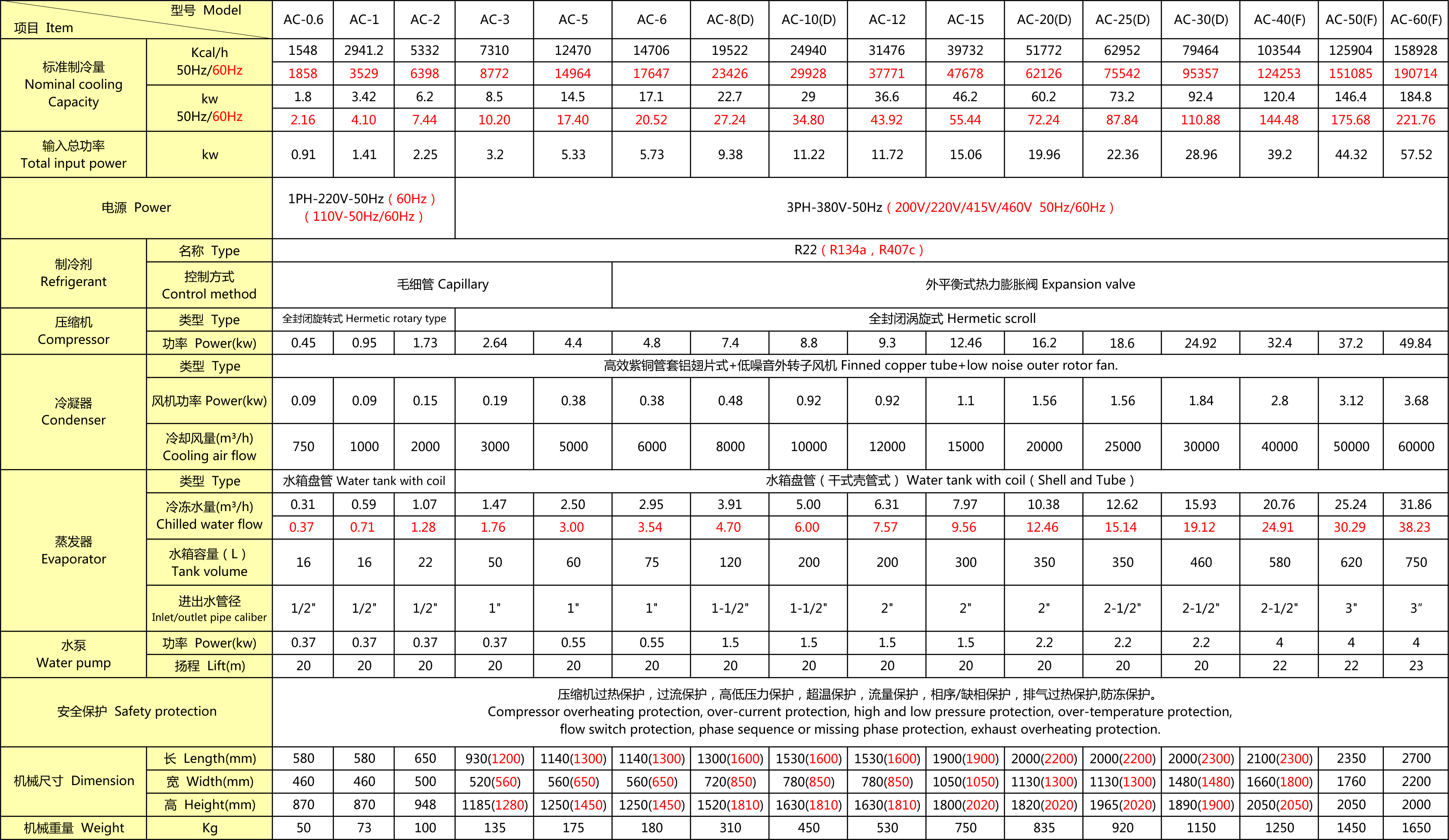 備注:1.製冷量是依據:冷凍水進出水溫度17℃/12℃、冷卻水進出水溫度30℃/35℃